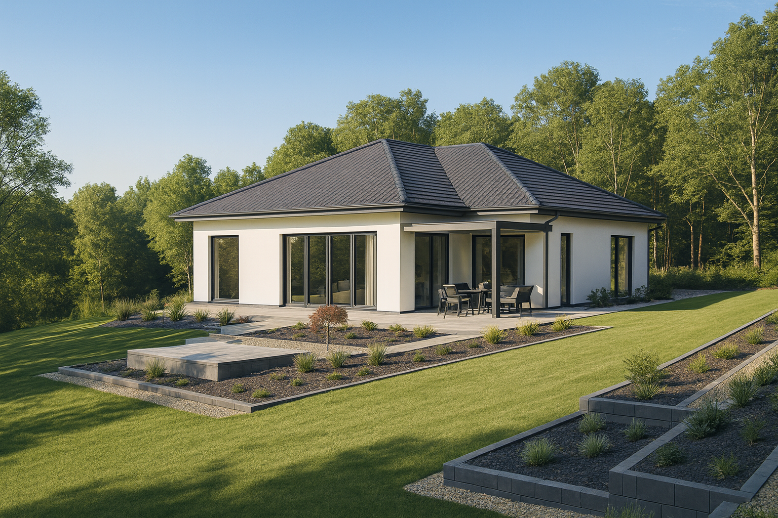Pergola dostosowuje się do warunków pogodowych i pory roku. Latem automatycznie zapewnia przyjemne zacienienie, a zimą doświetla wnętrze naturalnym światłem.